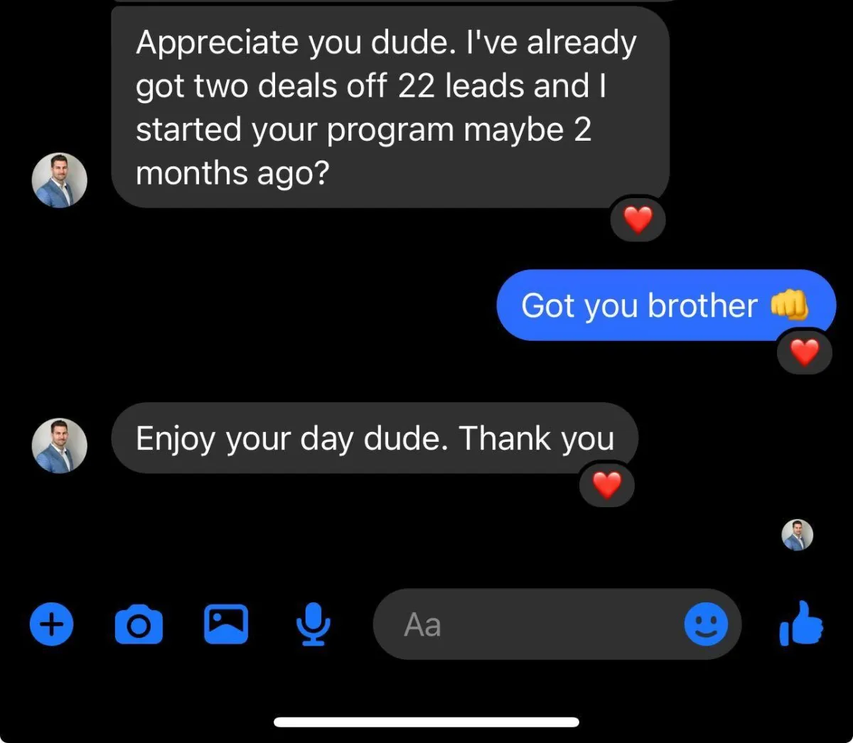 My personal lead gen campaigns in use today (with 10,000+ negative keywords I added by hand over 10 years), my landing pages, my CRM, all my automations to engage leads in my CRM, my wholesale contracts, my novation contracts, my 1.2M person buyers list, my hedge fund buyers, my sales scripts, my hiring SOP's, my training SOP's, my disposition strategies, my entire network, and more is all given to Cartel members.