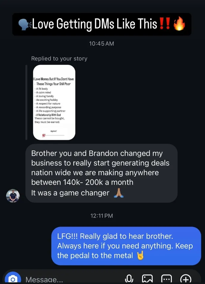 If you show up to calls with me and Brandon, do what we tell you to do, and use the resources we give you, then we will guarantee your results over the next 12 months. (See deposits below)
